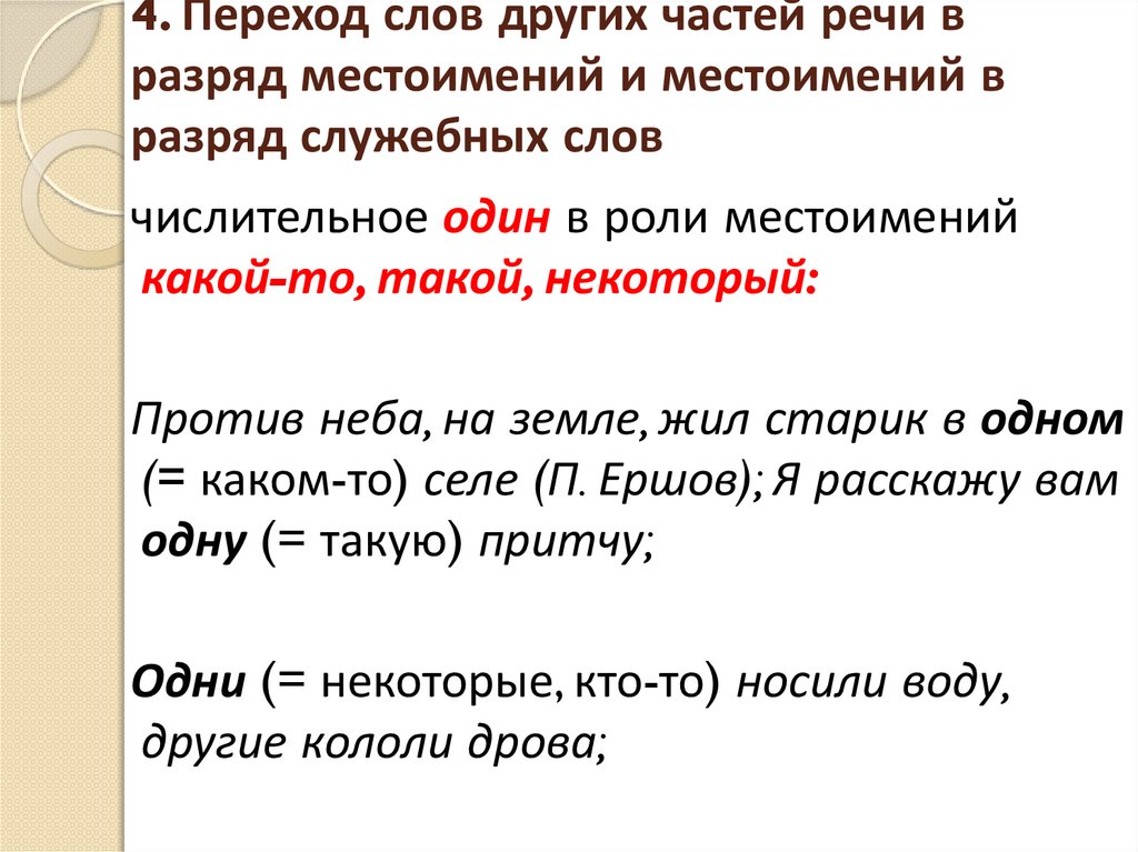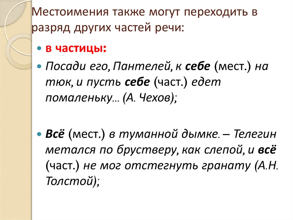 4. Переход слов других частей речи вразряд местоимений и местоимений в