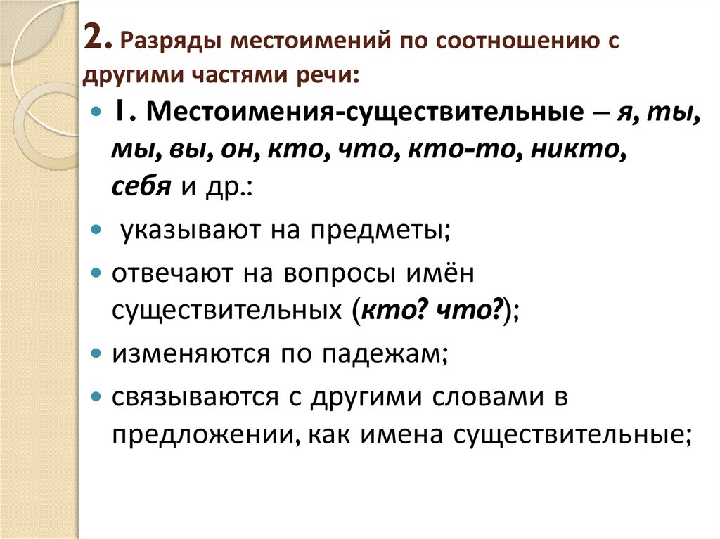 2. Разряды местоимений по соотношению сдругими частями речи: