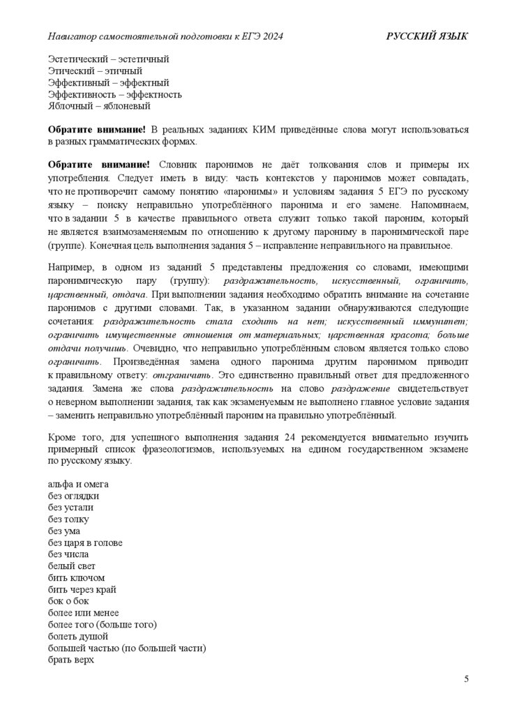 Навигатор самостоятельной подготовки к ЕГЭ 2024РУССКИЙ ЯЗЫК