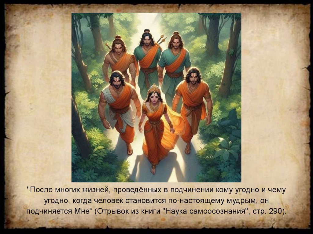 "После многих жизней, проведённых в подчинении кому угодно и чемуугодно, когда человек становится по-настоящему мудрым, он