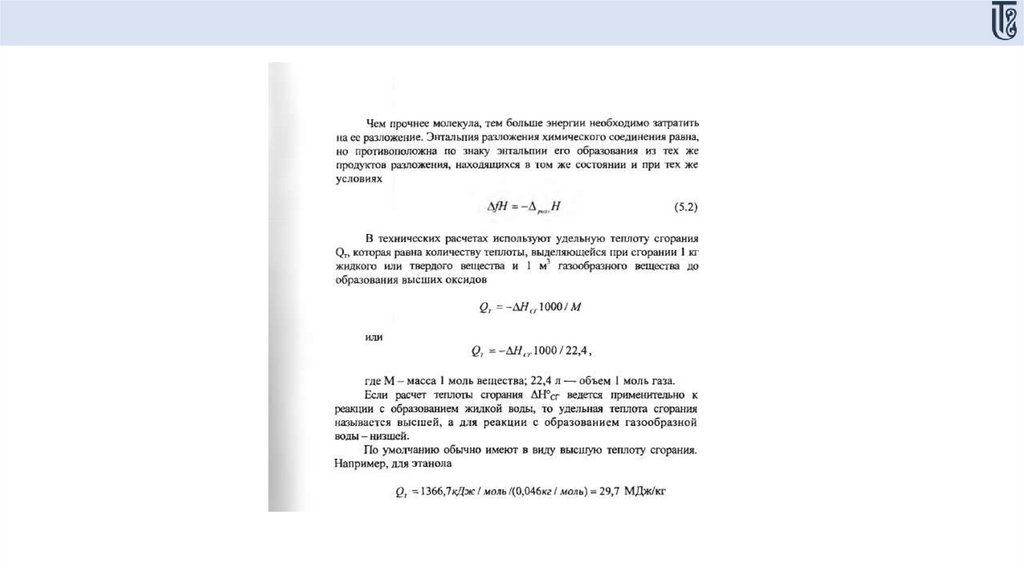 Материальные и тепловые эффекты горения топлива (лекция 3)