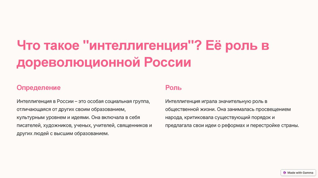 Что такое "интеллигенция"? Её роль вдореволюционной России