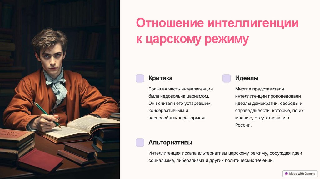 Интеллигенция искала альтернативы царскому режиму, обсуждая идеи