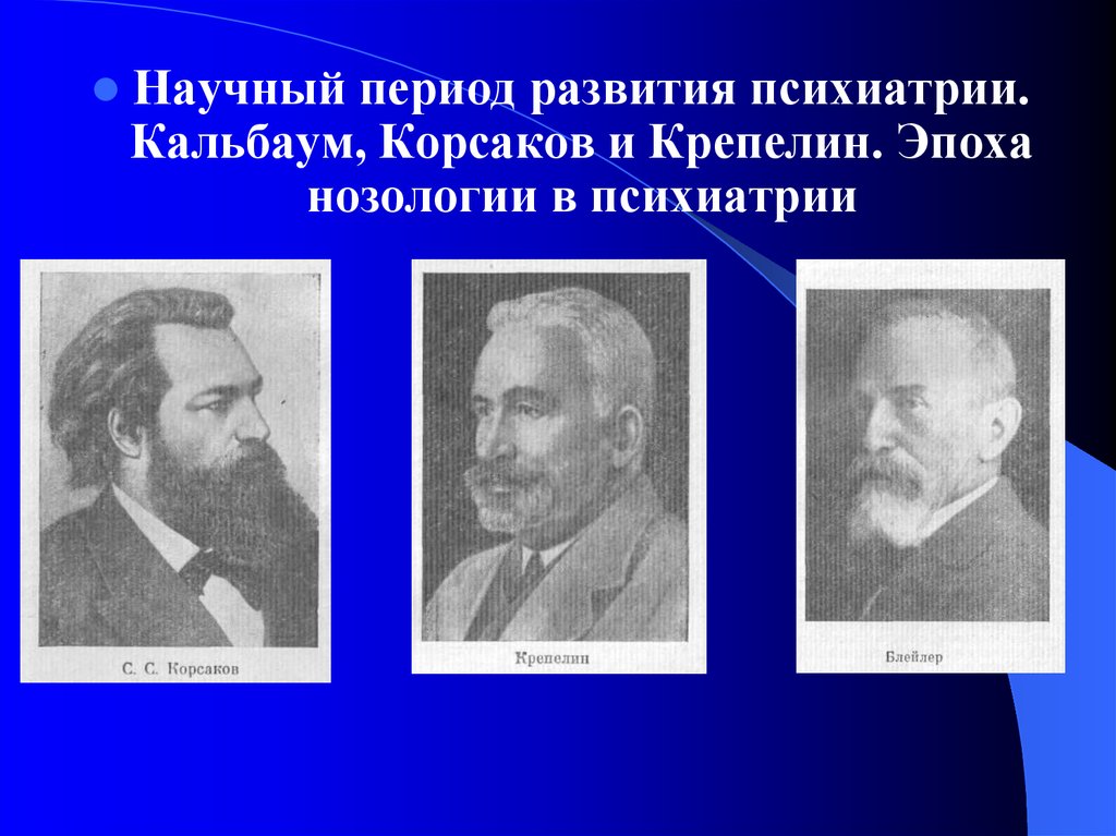 Научный период развития психиатрии.Кальбаум, Корсаков и Крепелин. Эпоха