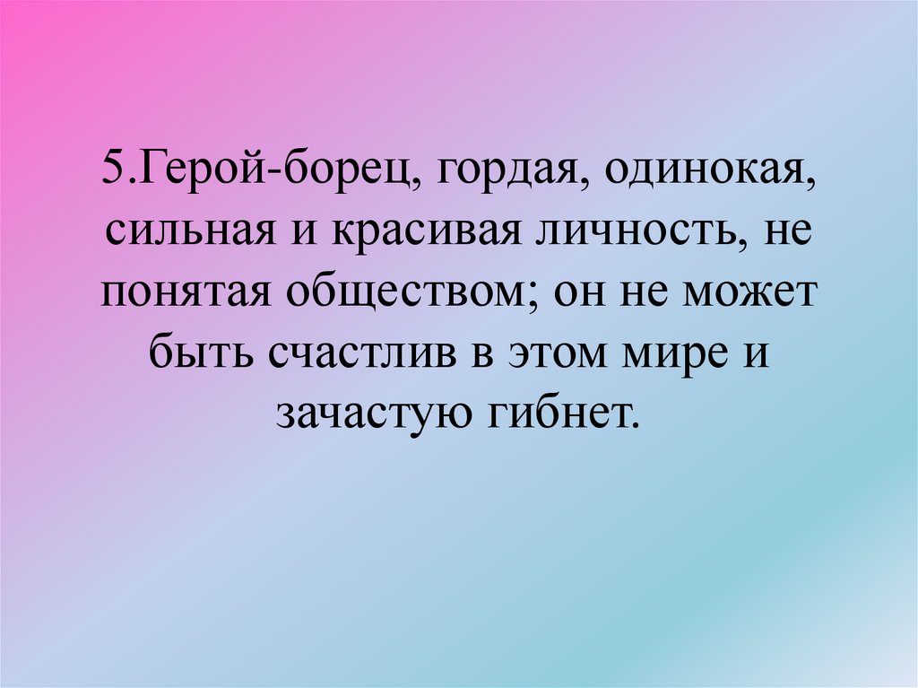 5.Герой-борец, гордая, одинокая,сильная и красивая личность, не