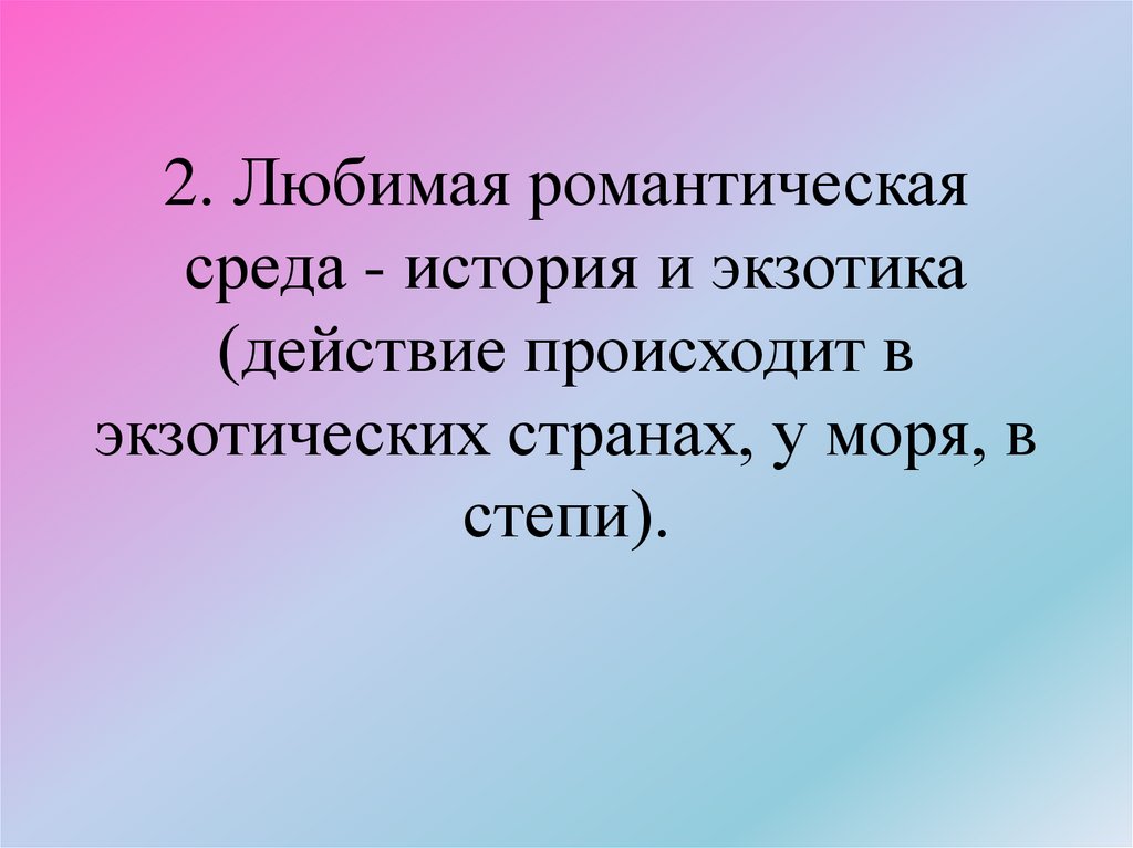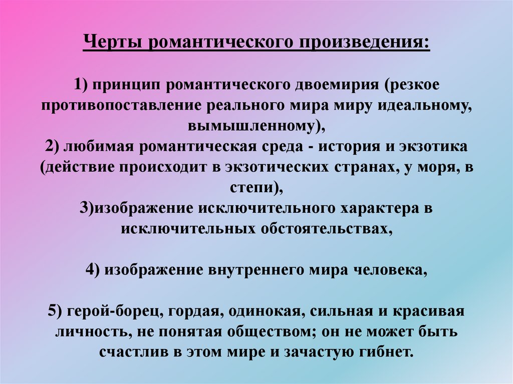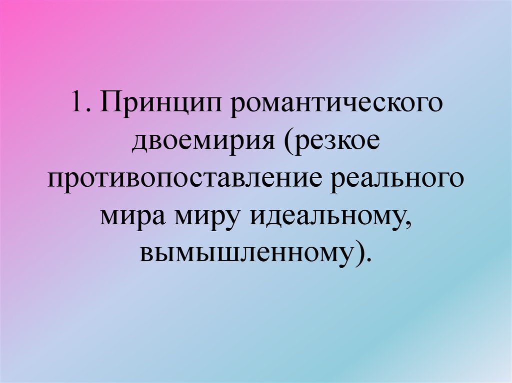 Черты романтического произведения:1) принцип романтического двоемирия (резкое