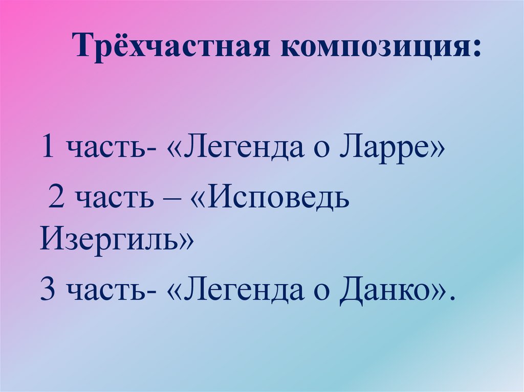 Трёхчастная композиция:1 часть- «Легенда о Ларре»