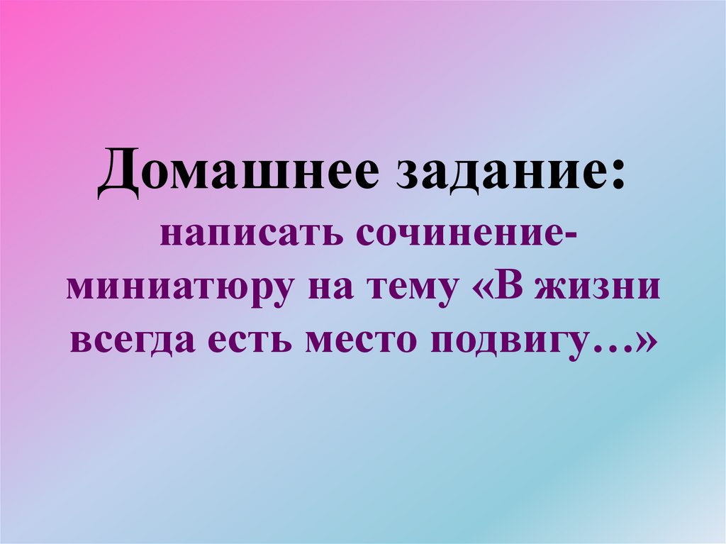 Домашнее задание:написать сочинениеминиатюру на тему «В жизни