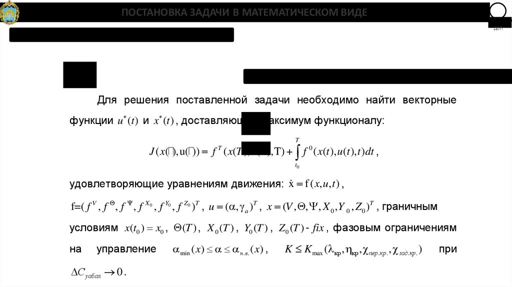 условиям x(t0 ) x0 , (T ) , X 0 (T ) , Y0 (T ) , Z 0 (T ) - fix , фазовым ограничениям