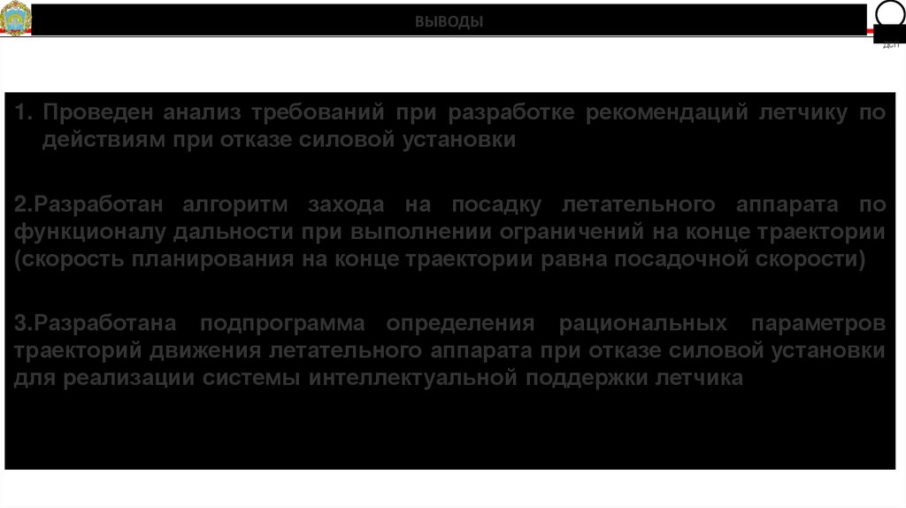 1. Проведен анализ требований при разработке рекомендаций летчику по