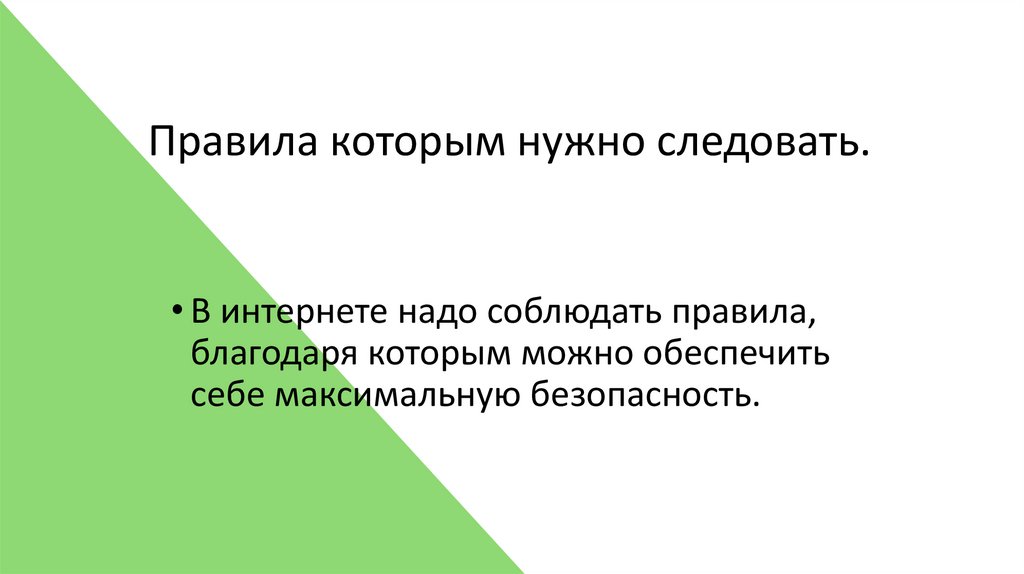 Правила которым нужно следовать.• В интернете надо соблюдать правила,