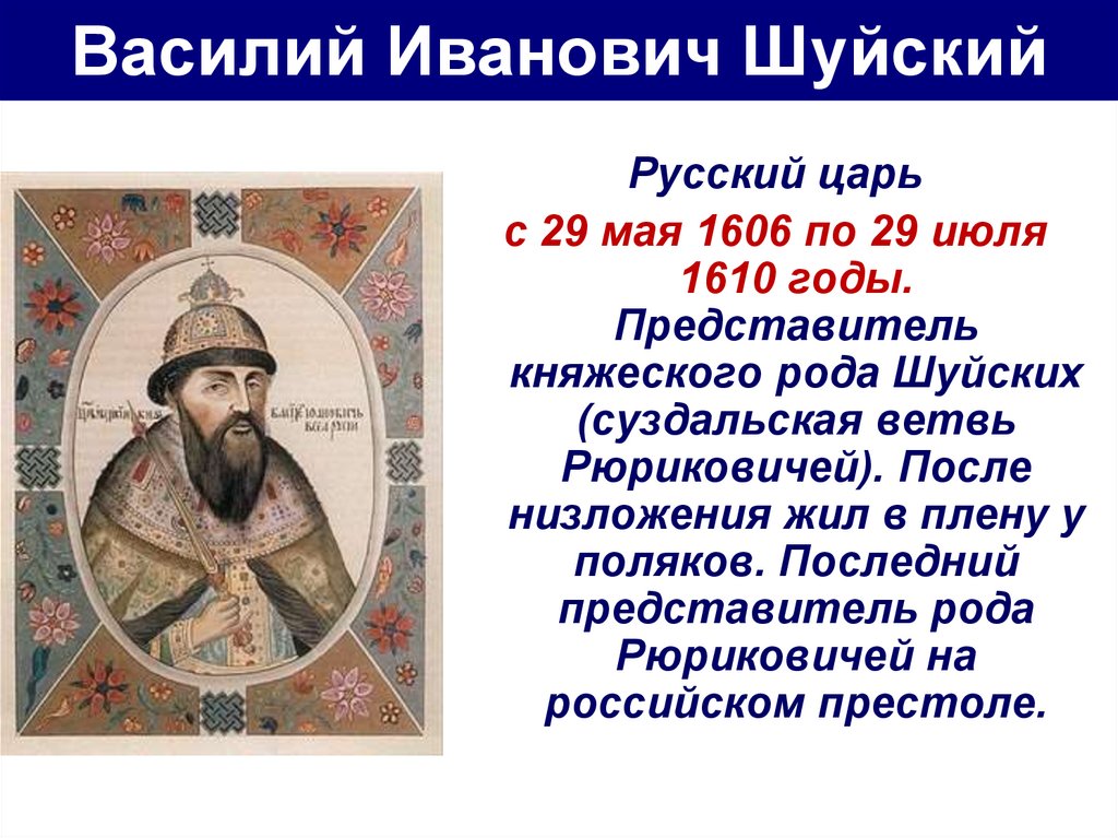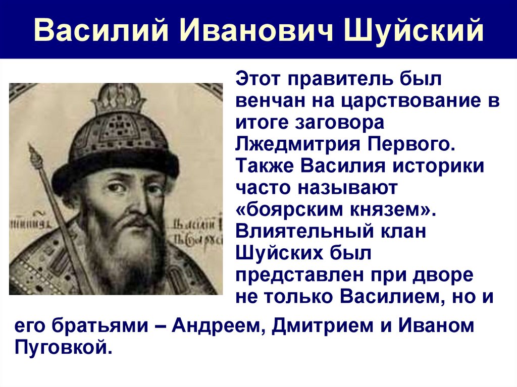 Василий Шуйский был правителем, которыйправил в один из самых трудных периодов в