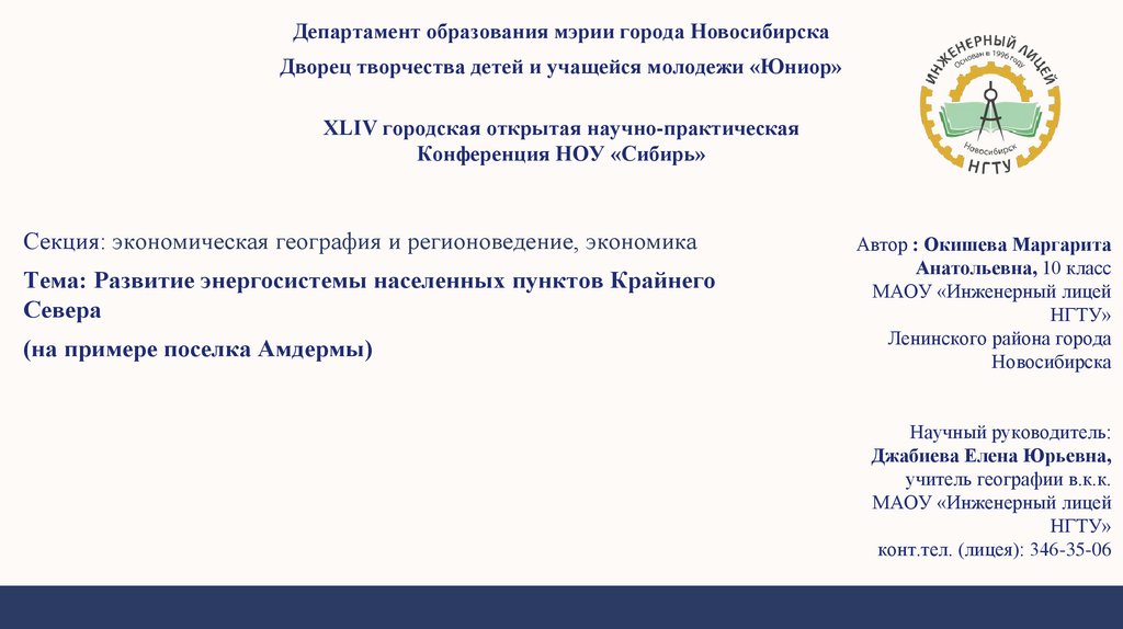 Департамент образования мэрии города НовосибирскаДворец творчества детей и учащейся молодежи «Юниор»