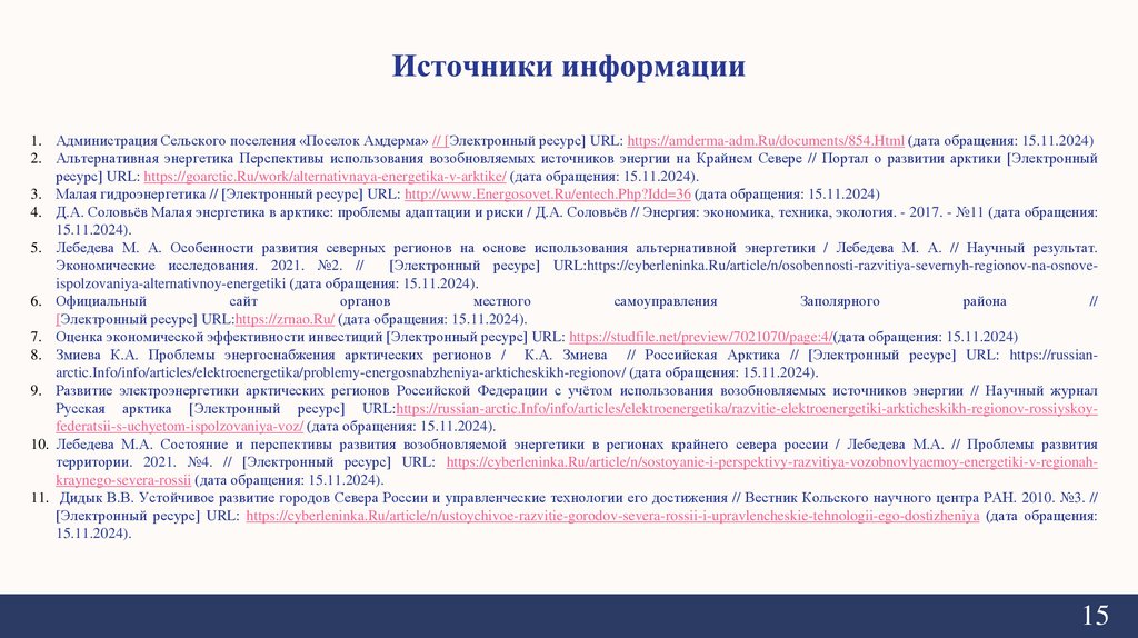 [Электронный ресурс] URL:https://cyberleninka.Ru/article/n/osobennosti-razvitiya-severnyh-regionov-na-osnoveispolzovaniya-alternativnoy-energetiki (дата обращения: 15.11.2024).
