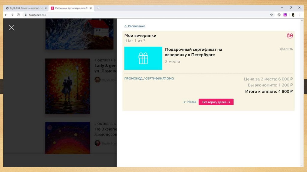 10. Конец сценария (выбор способа оплаты и работу платежного сервиса не рассматриваем)