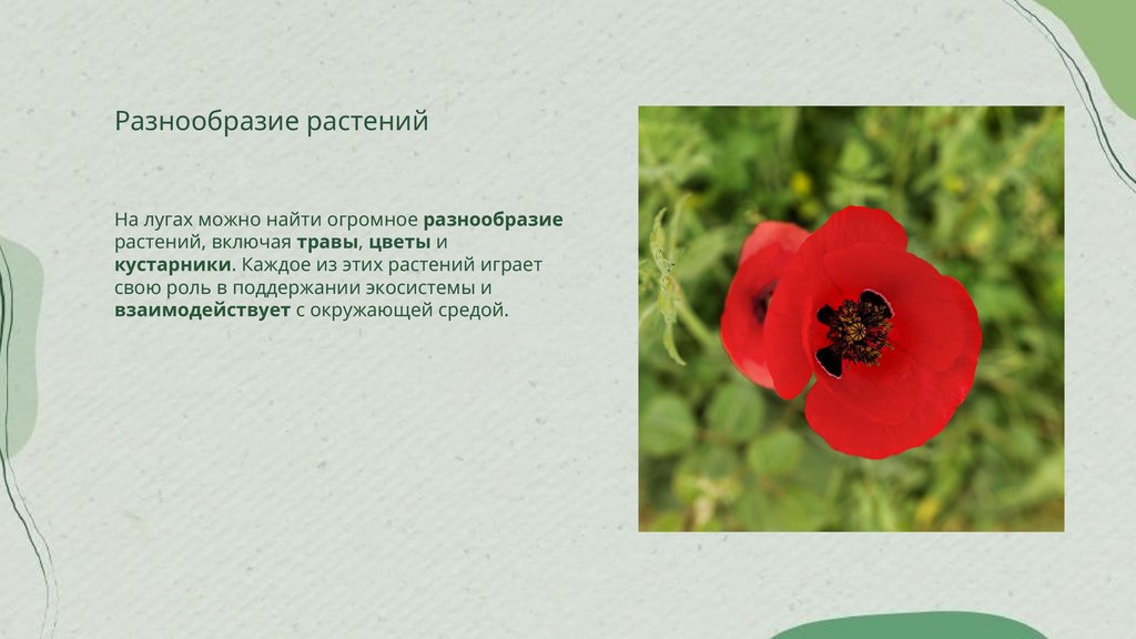 Разнообразие растенийНа лугах можно найти огромное разнообразие