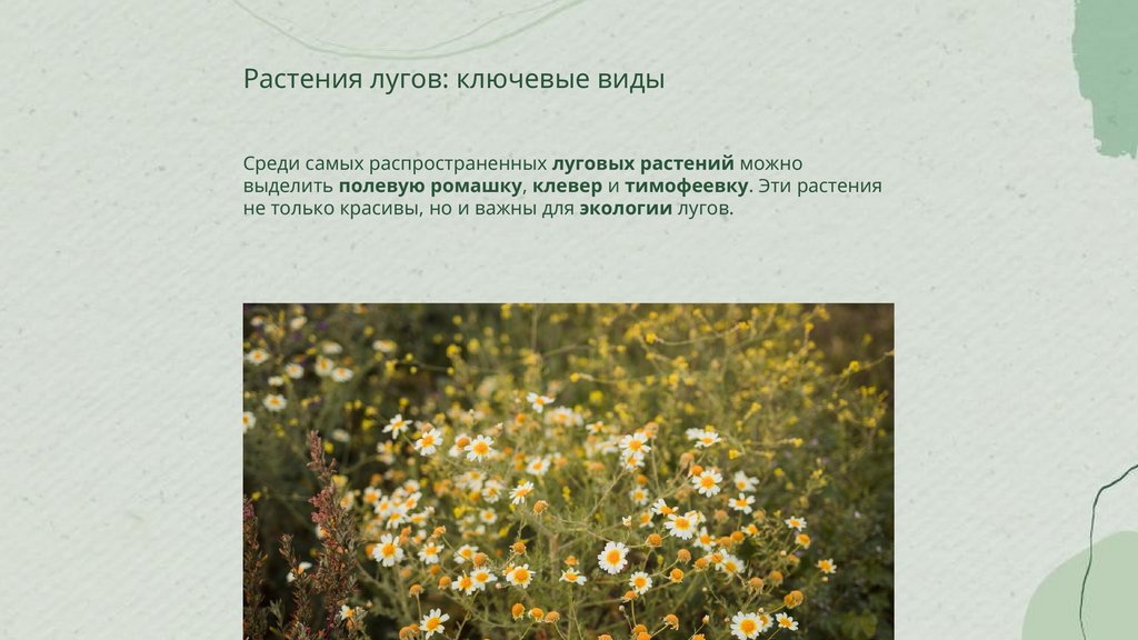 Растения лугов: ключевые видыСреди самых распространенных луговых растений можно