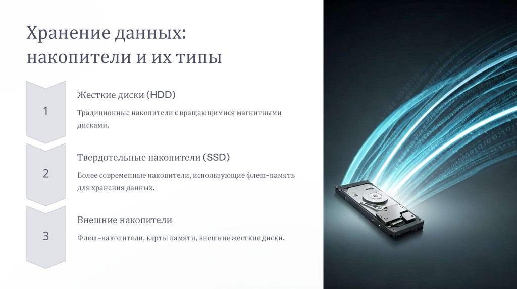 Флеш-накопители, карты памяти, внешние жесткие диски.