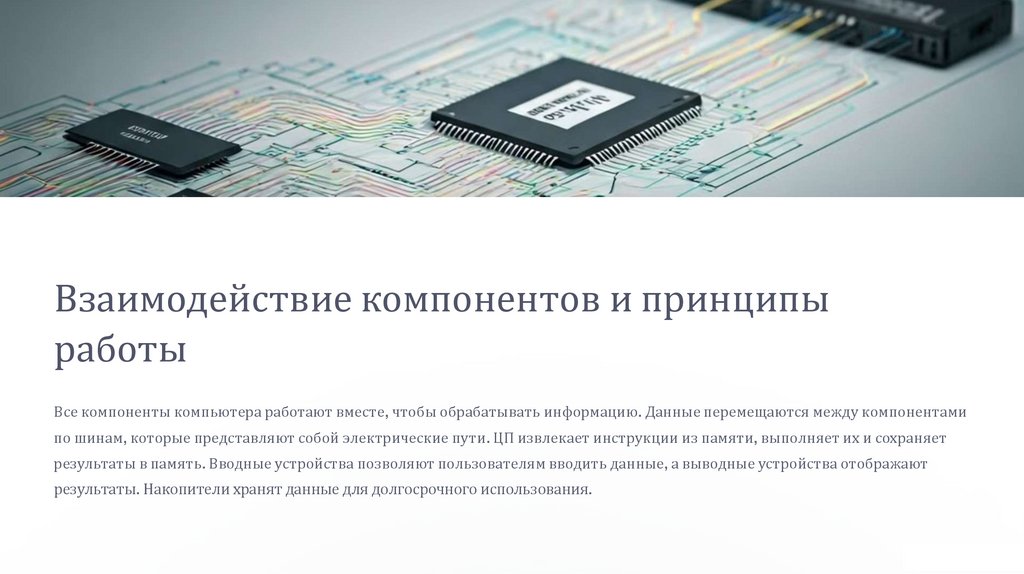 Все компоненты компьютера работают вместе, чтобы обрабатывать информацию. Данные перемещаются между компонентами