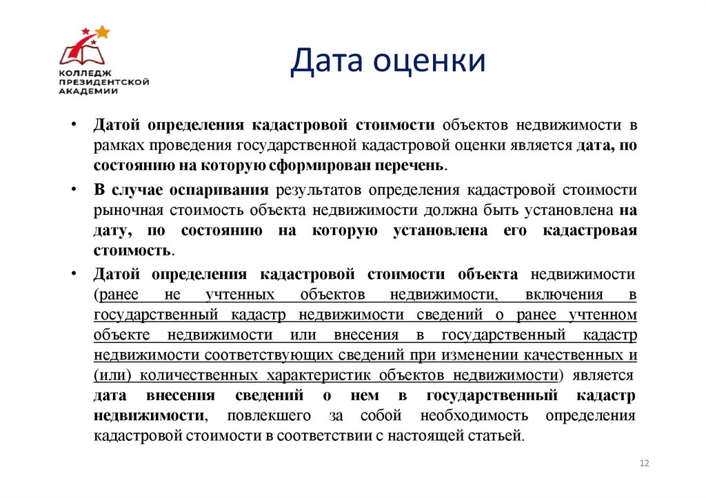 • Датой определения кадастровой стоимости объекта недвижимости