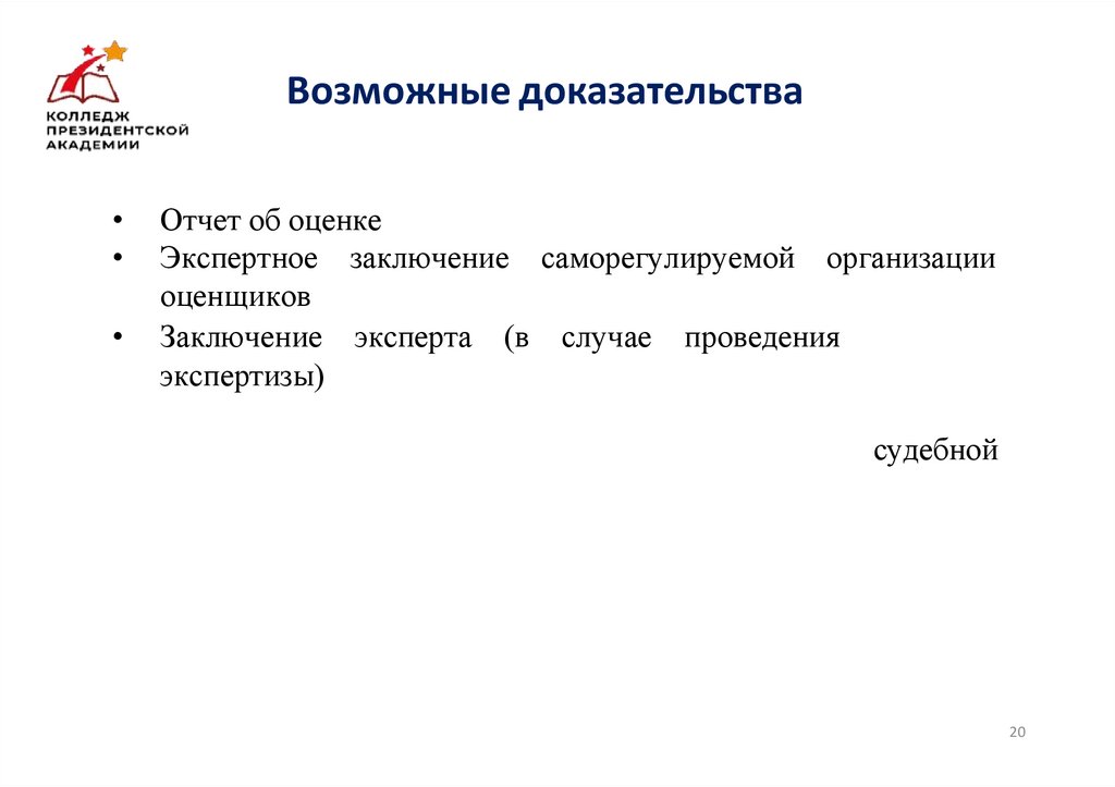 Возможные доказательстваОтчет об оценке