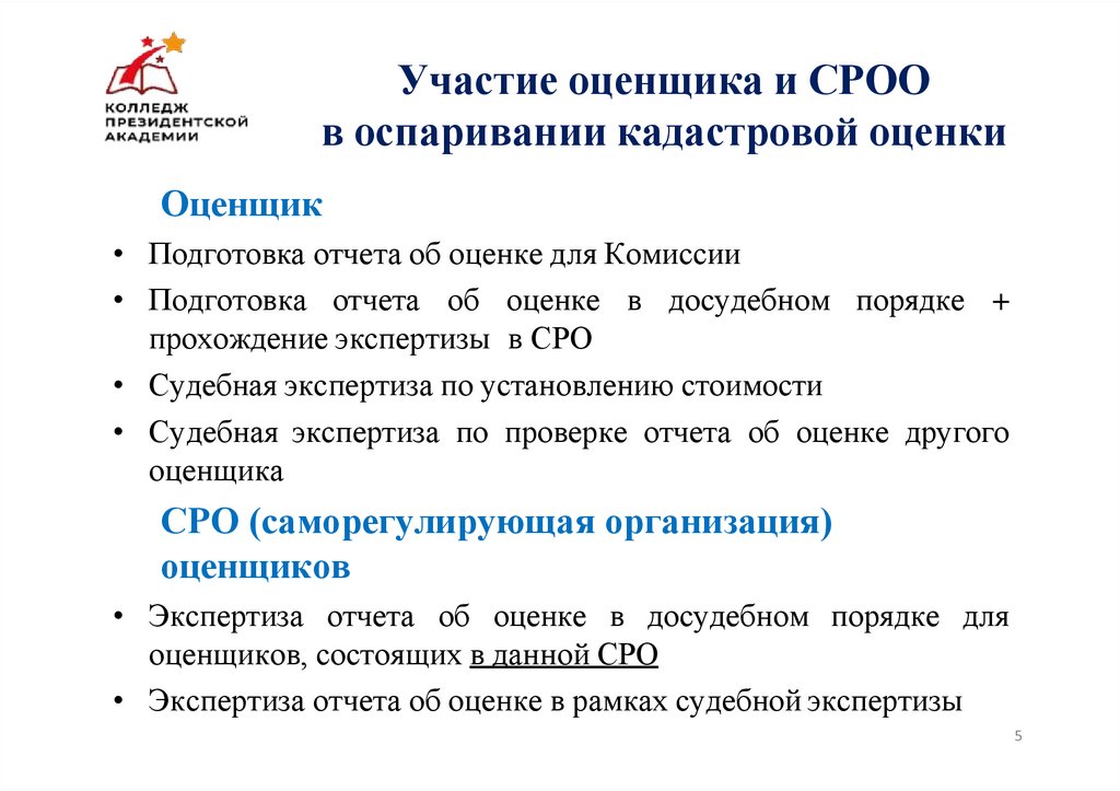 Участие оценщика и СРООв оспаривании кадастровой оценки
