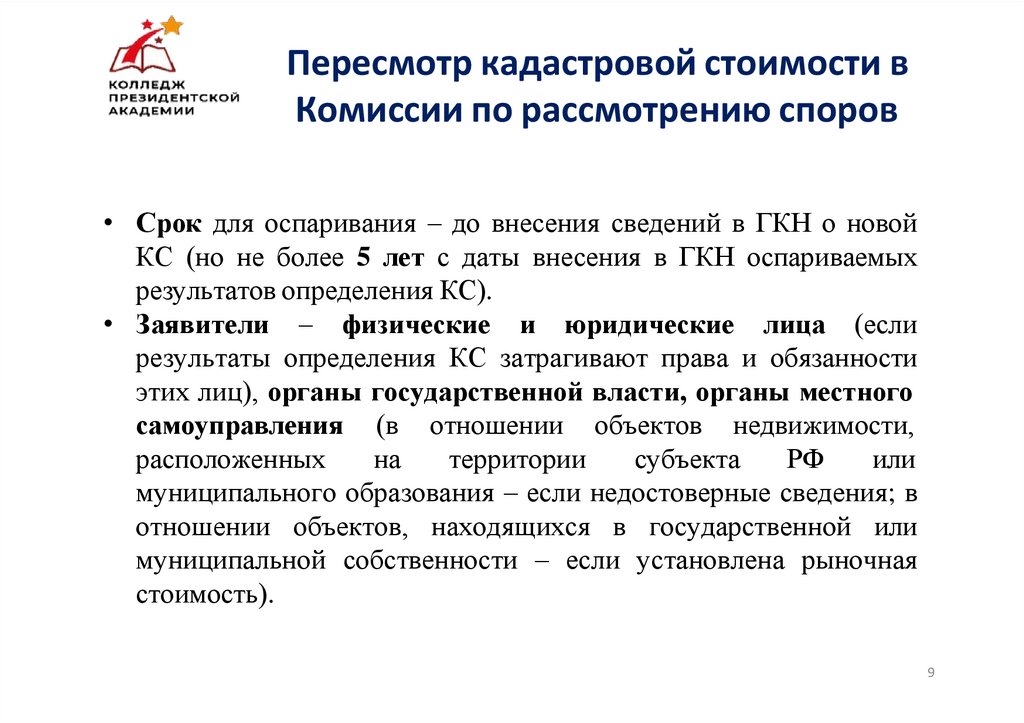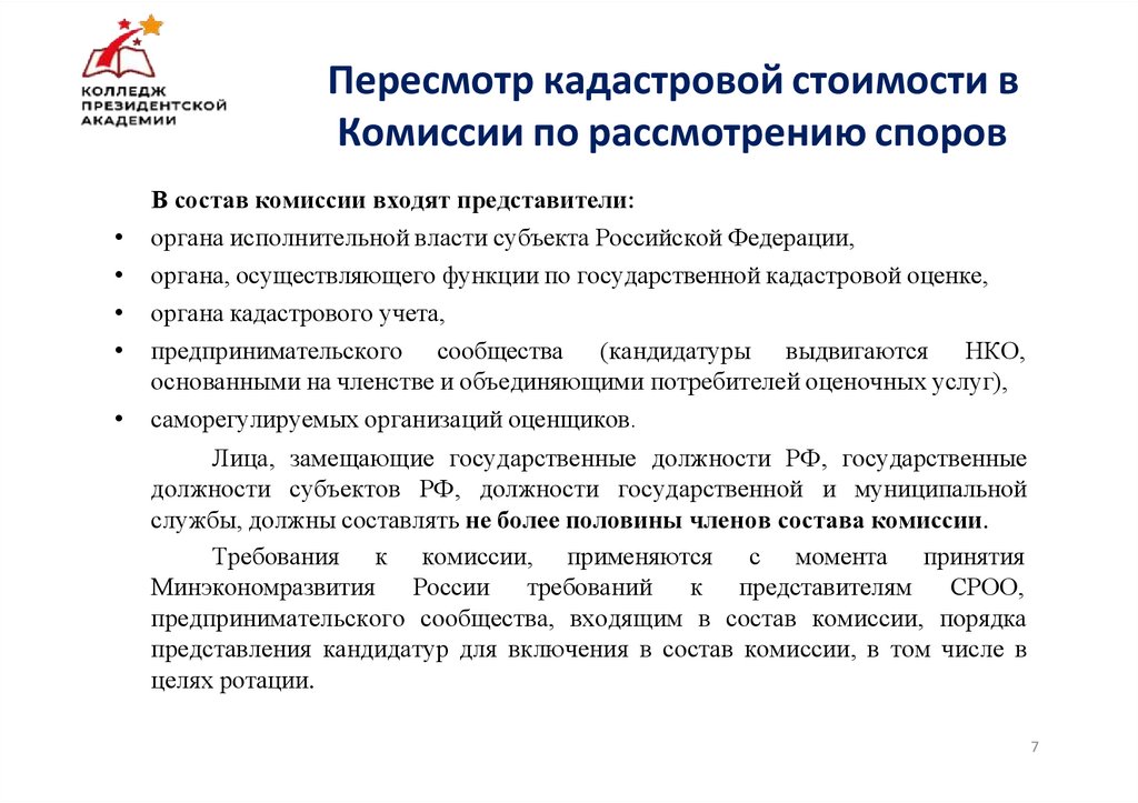Пересмотр кадастровой стоимости вКомиссии по рассмотрению споров