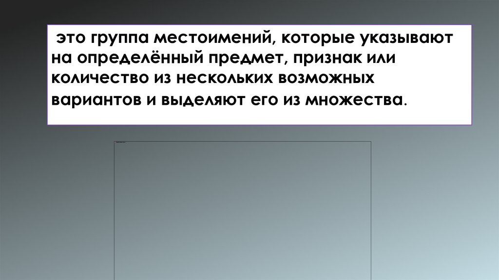 это группа местоимений, которые указываютна определённый предмет, признак или