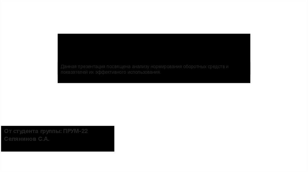 Данная презентация посвящена анализу нормирования оборотных средств и