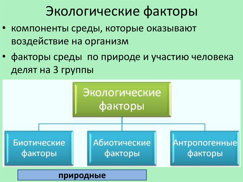 • факторы среды по природе и участию человека