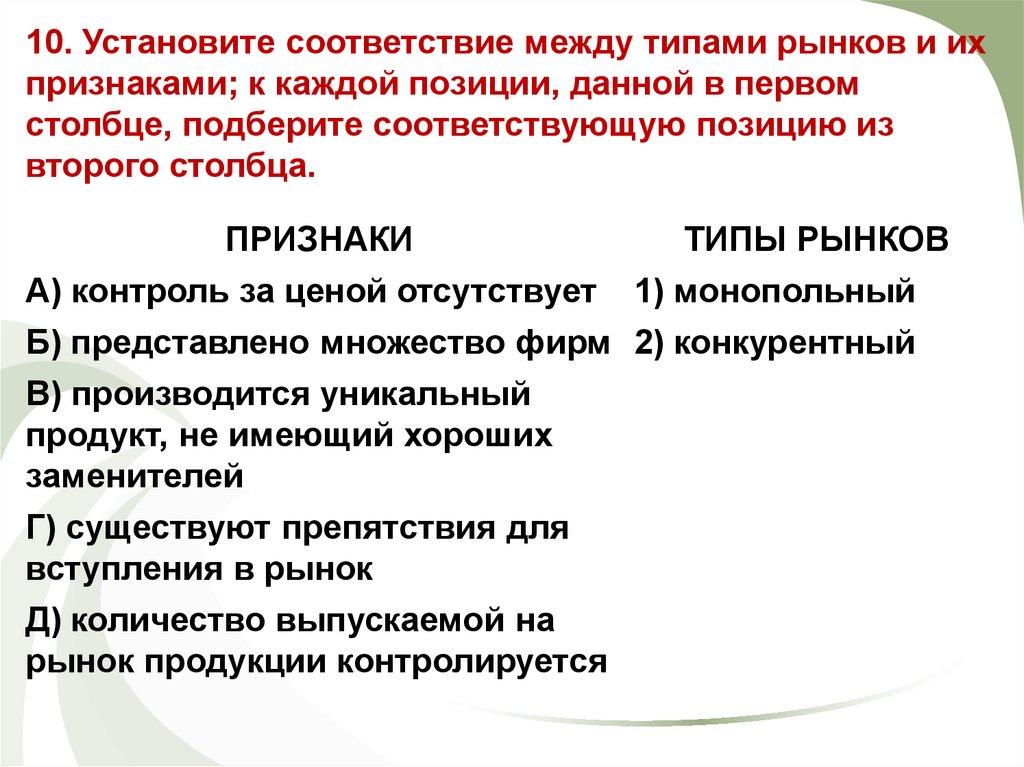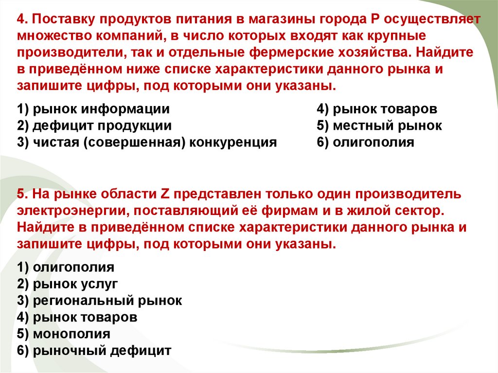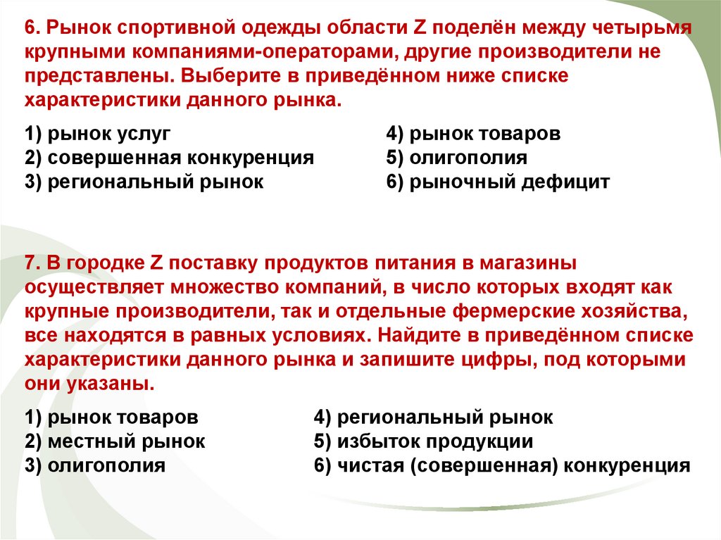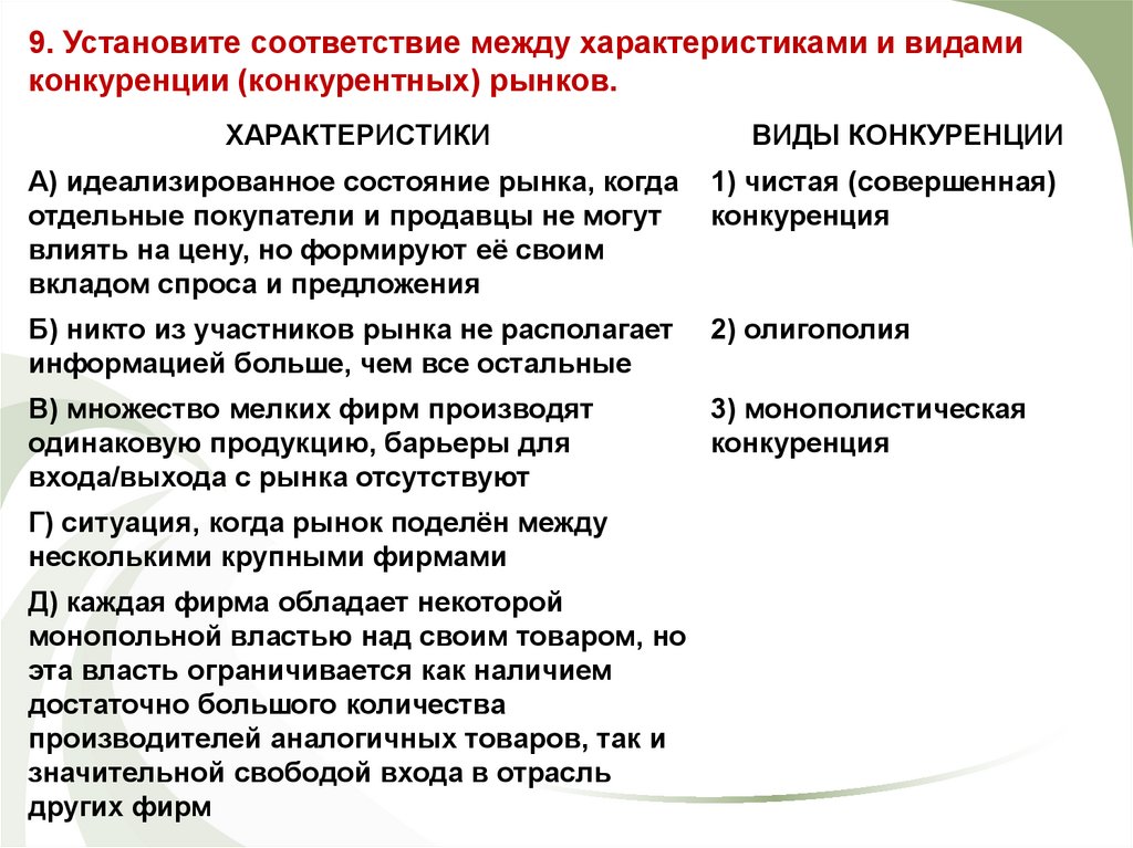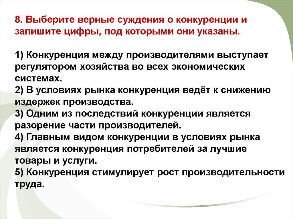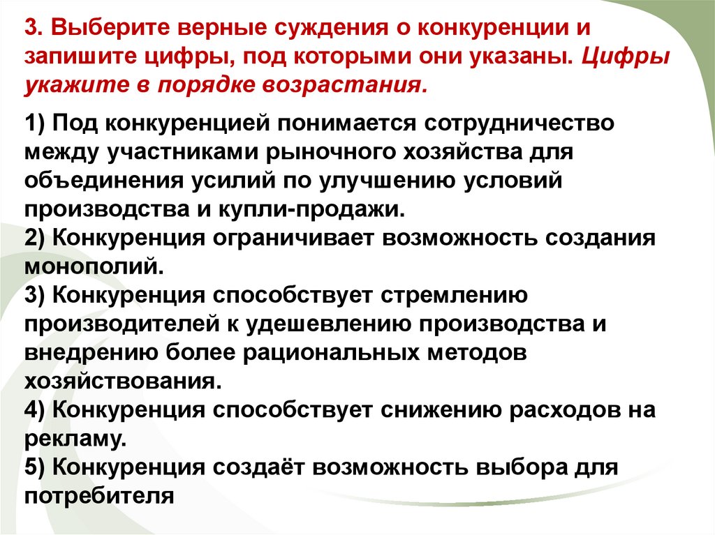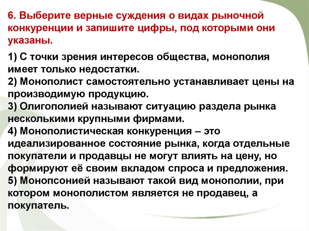 6. Выберите верные суждения о видах рыночнойконкуренции и запишите цифры, под которыми они