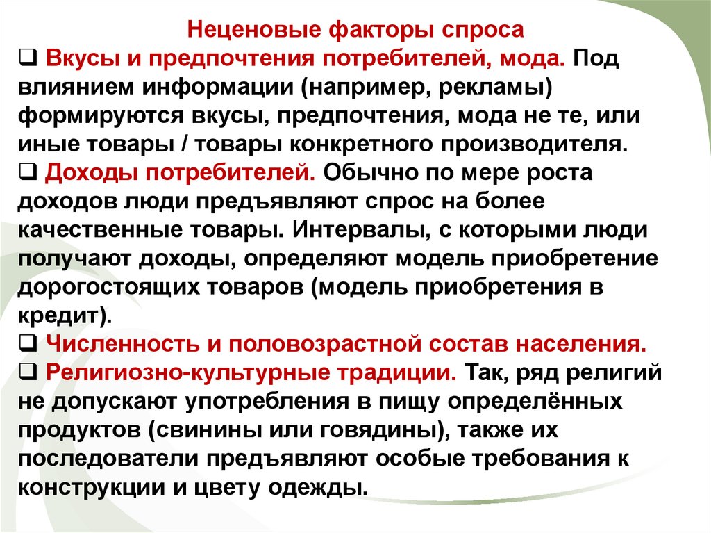 24. Назовите и проиллюстрируйте примерами любыетри неценовых фактора, влияющих на формирование