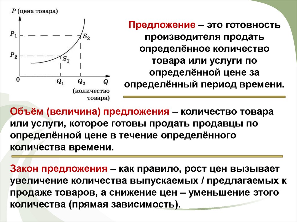 взаимосвязь между ценой и величиной предложения, т.е., как