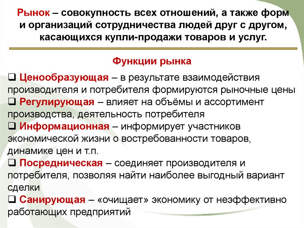 Рынок – совокупность всех отношений, а также форми организаций сотрудничества людей друг с другом,
