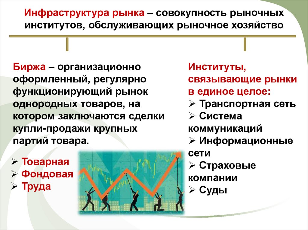 Инфраструктура рынка – совокупность рыночныхинститутов, обслуживающих рыночное хозяйство