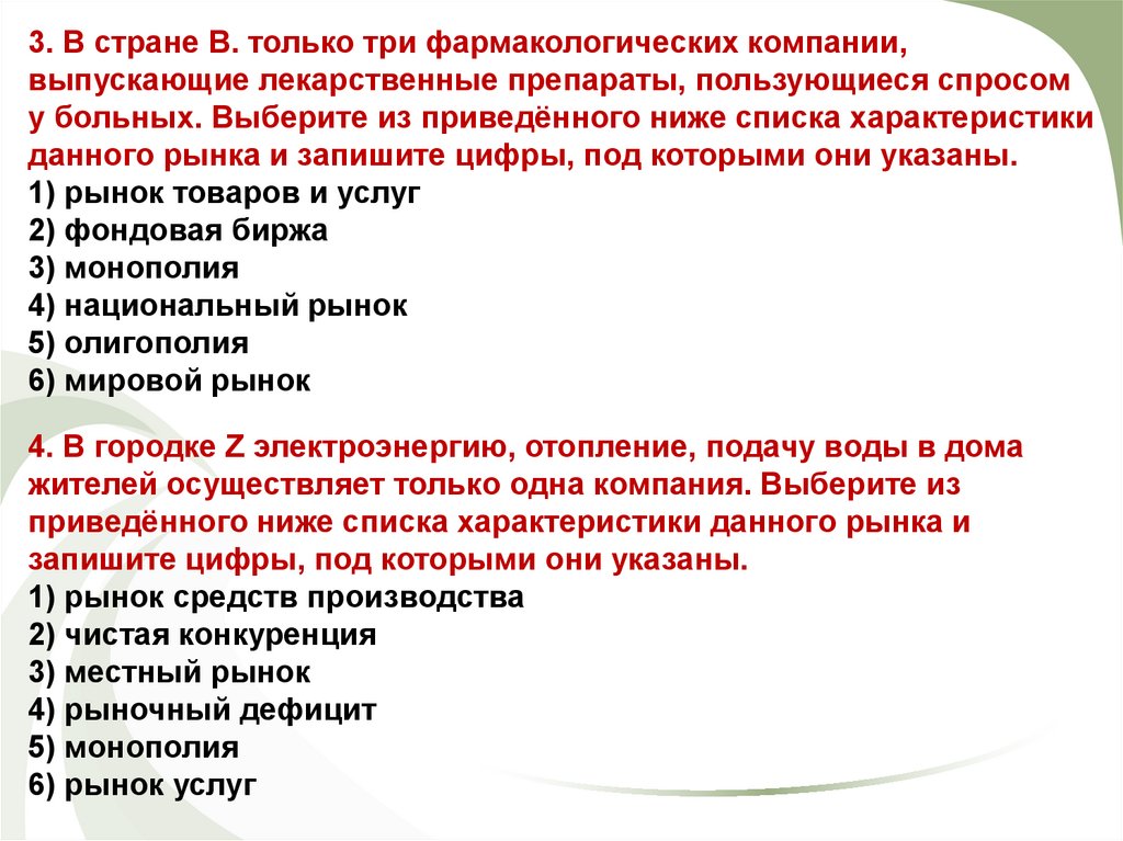 3. В стране В. только три фармакологических компании,выпускающие лекарственные препараты, пользующиеся спросом