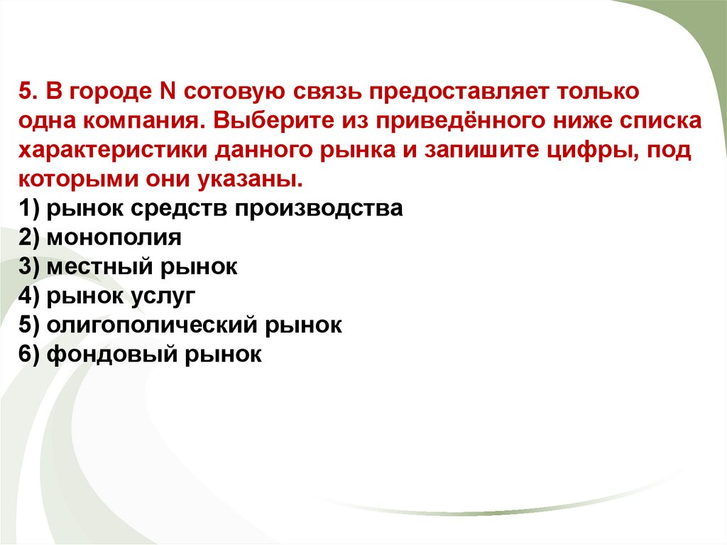 5. В городе N сотовую связь предоставляет толькоодна компания. Выберите из приведённого ниже списка