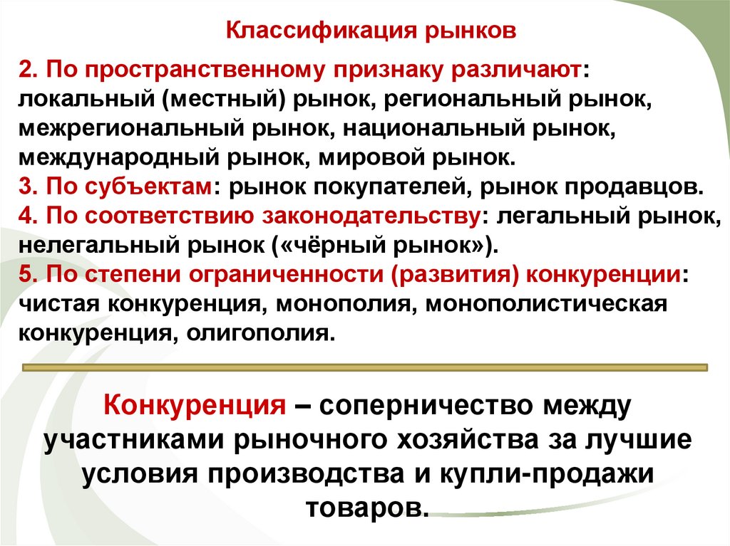 3. По субъектам: рынок покупателей, рынок продавцов.