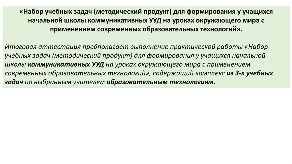«Набор учебных задач (методический продукт) для формирования у учащихсяначальной школы коммуникативных УУД на уроках окружающего мира с