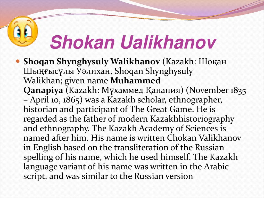 Шыңғысұлы Уәлихан, Shoqan Shynghysuly