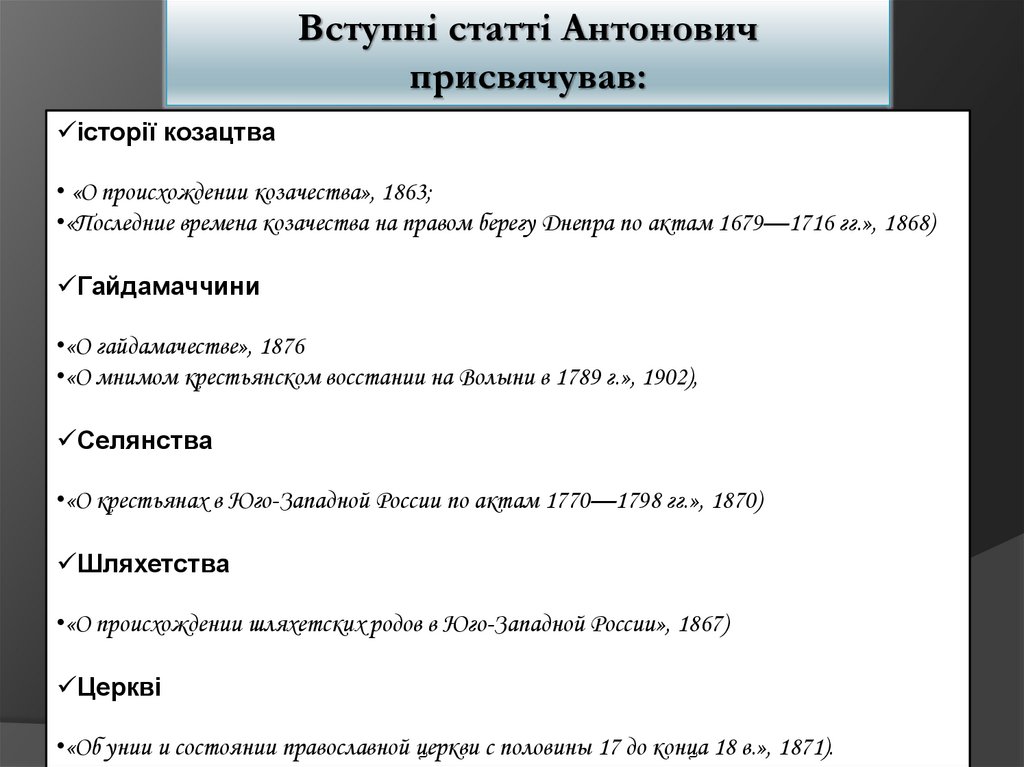 •«О крестьянах в Юго-Западной России по актам 1770—1798 гг.», 1870)