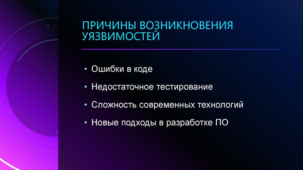 ПРИЧИНЫ ВОЗНИКНОВЕНИЯУЯЗВИМОСТЕЙ