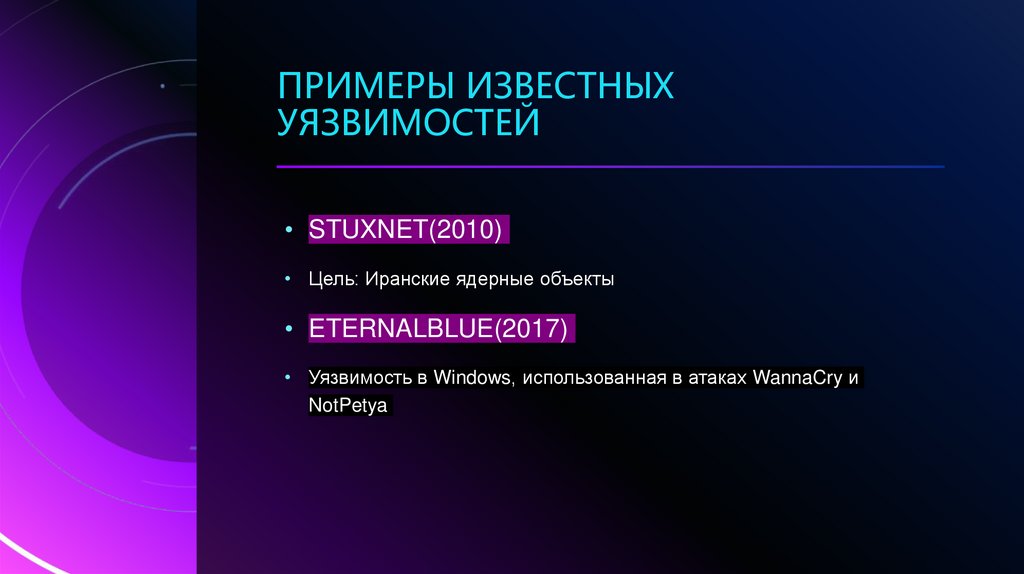 ПРИМЕРЫ ИЗВЕСТНЫХУЯЗВИМОСТЕЙ