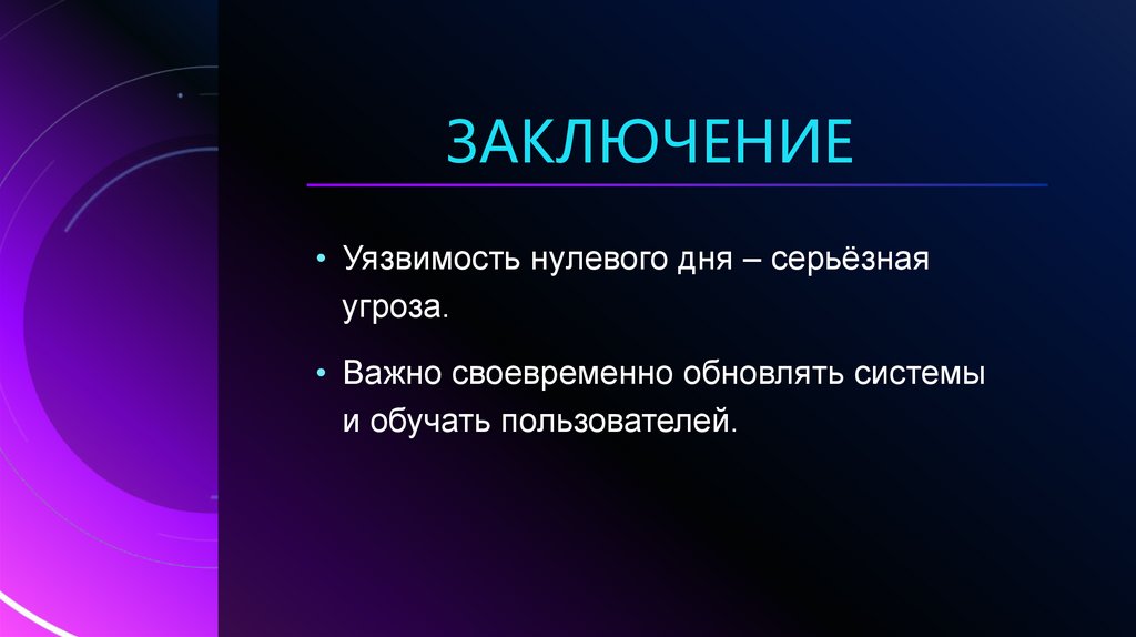 ЗАКЛЮЧЕНИЕ• Уязвимость нулевого дня – серьёзная