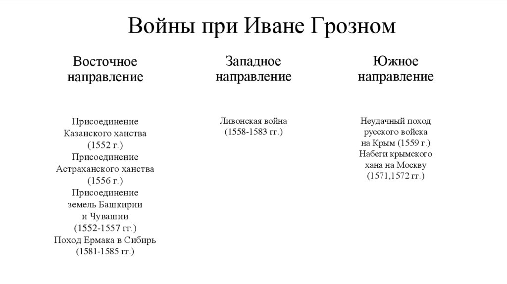 Итоги внешней политики Ивана ГрозногоВосточное направление