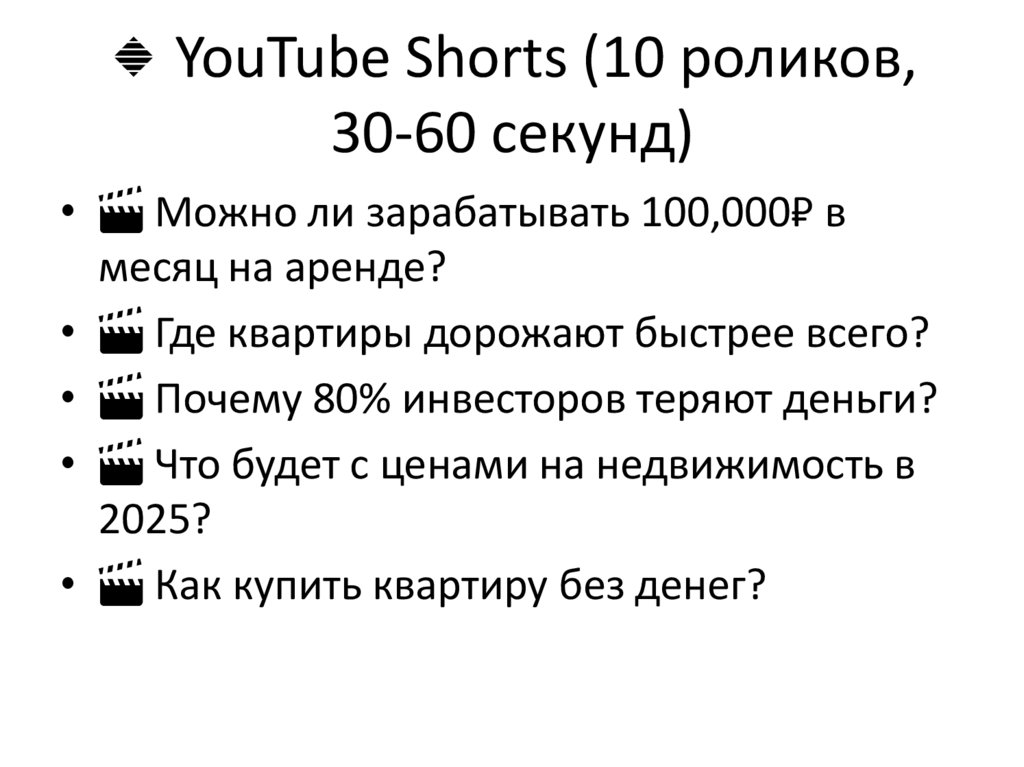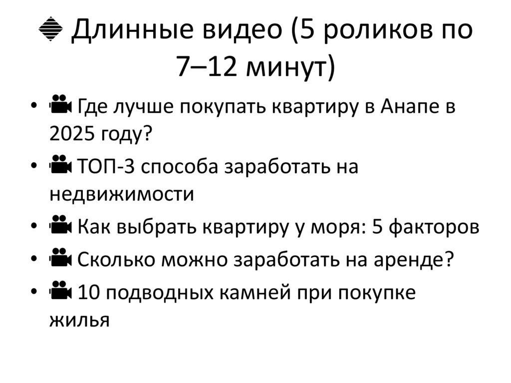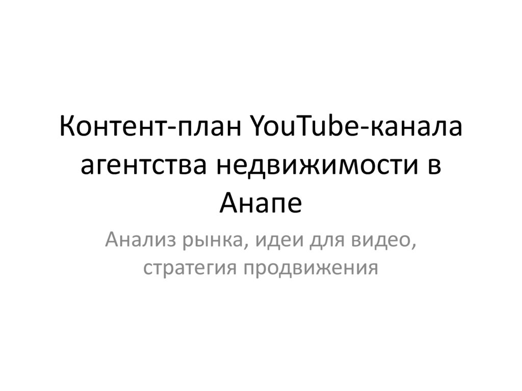 Контент-план YouTube-канала агентства недвижимости в Анапе