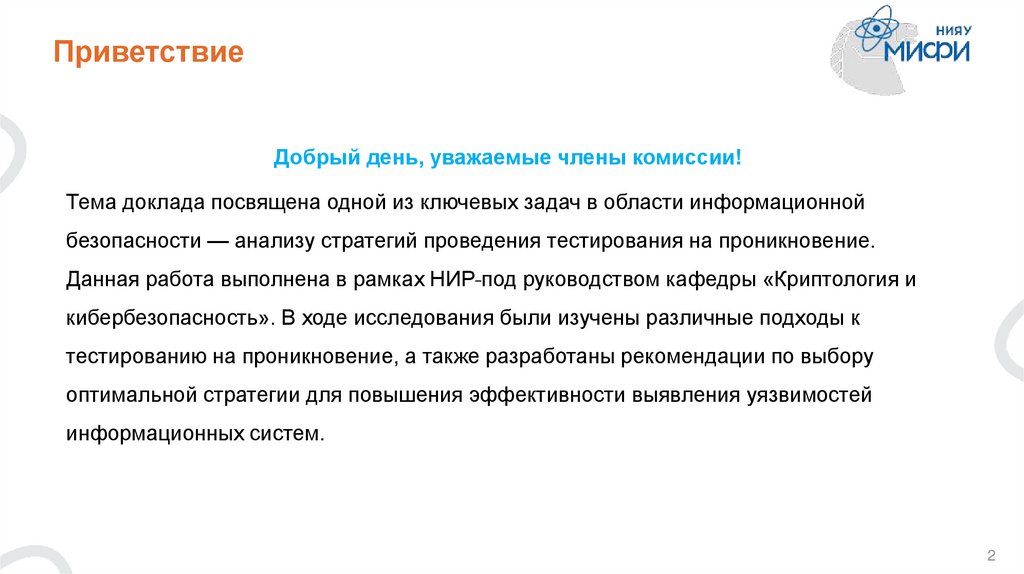 ПриветствиеДобрый день, уважаемые члены комиссии!