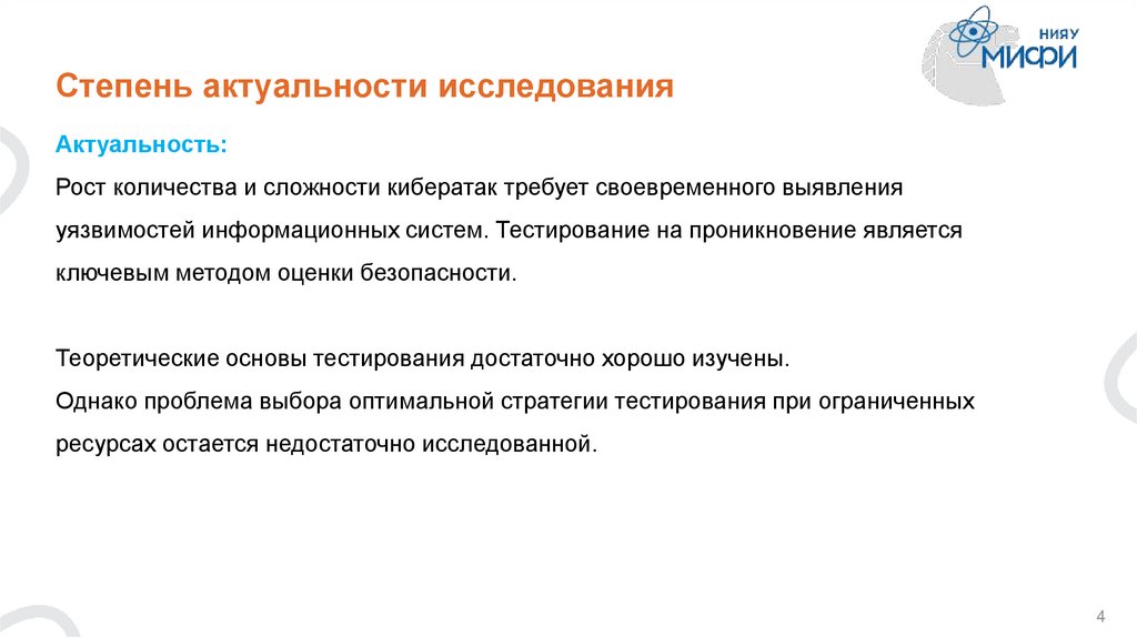 ● Системный анализ существующих подходов к тестированию на проникновение.
