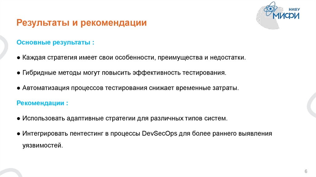 ● Интегрировать пентестинг в процессы DevSecOps для более раннего выявления