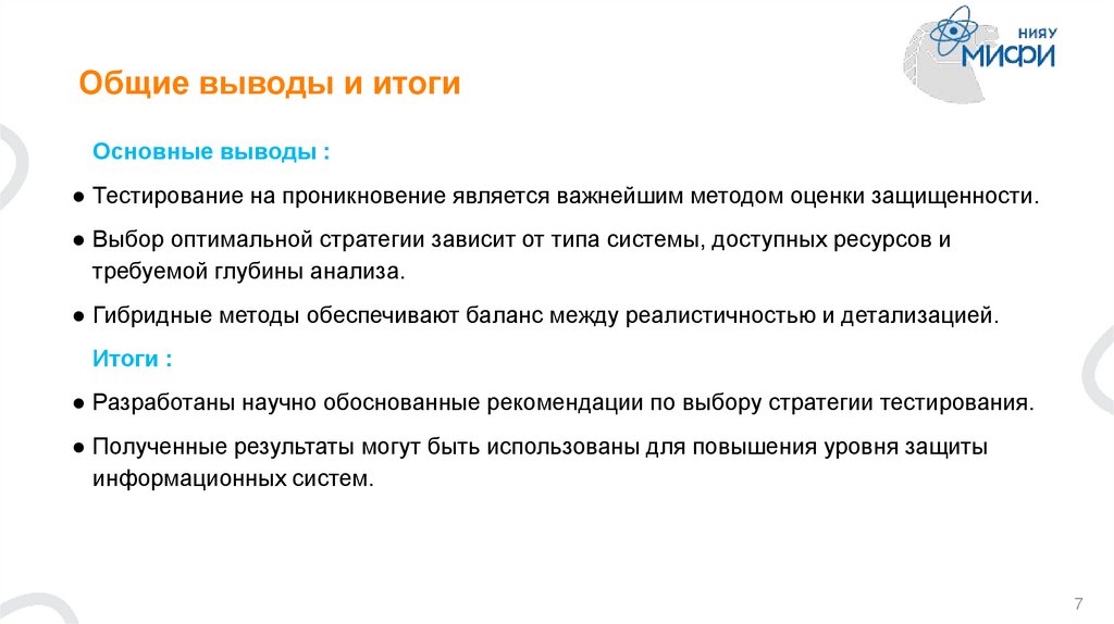 ● Полученные результаты могут быть использованы для повышения уровня защиты